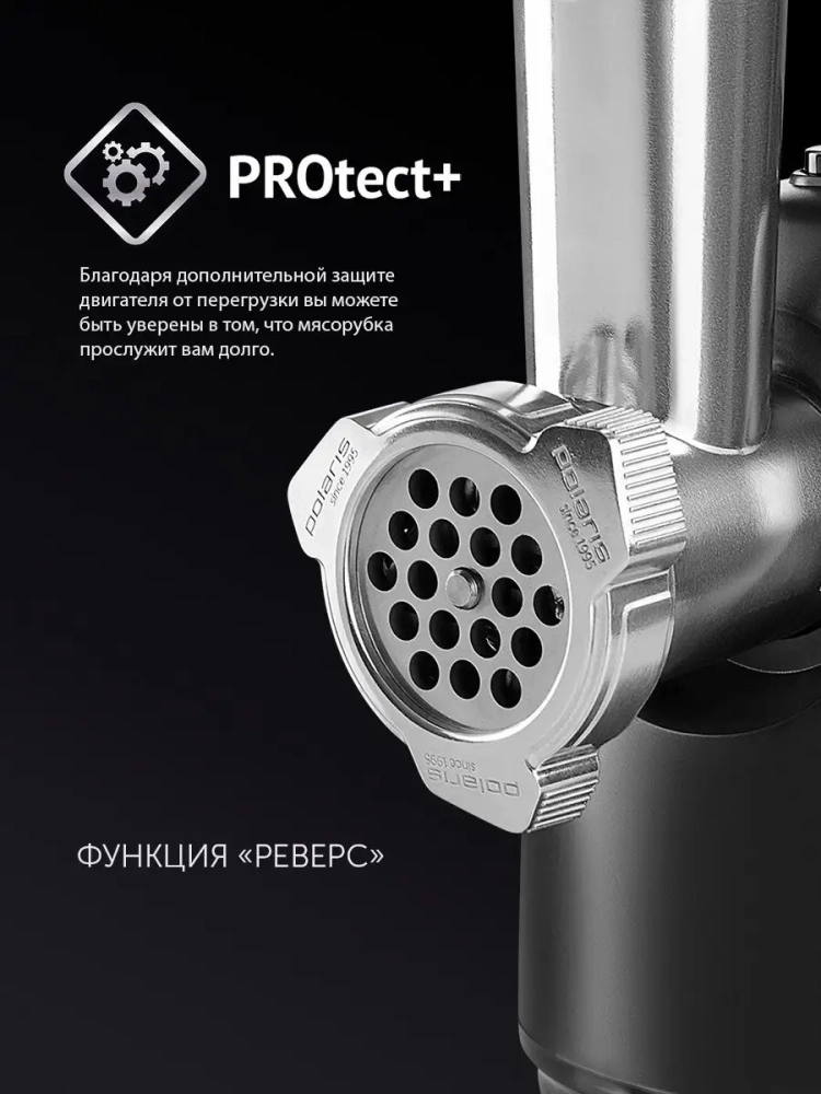 Инновационная технология PROtect+ обеспечивает исключительную защиту двигателя от чрезмерной нагрузки во время непрерывной работы прибора. Нескользящие резиновые ножки надежно фиксируют мясорубку на рабочей поверхности.