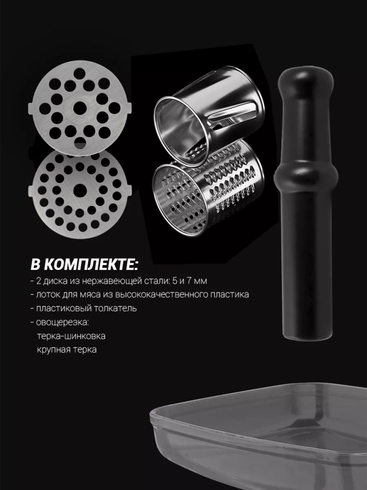 Корпус электромясорубки выполнен из прочного высококачественного пластика, который соответствует европейским стандартам и полностью безопасен для использования. Устойчивые резиновые ножки обеспечивают стабильное крепление на любой поверхности, позволяя перемалывать фарш без вибраций и смещений устройства. Измельчение мяса, птицы или рыбы для вкуснейших блюд станет простым и приятным процессом. Благодаря мясорубке, вы сможете приготовить нежнейший фарш для домашних колбас и сосисок. А сочные котлеты и нежные фрикадельки, станут вашими кулинарными шедеврами, созданными с легкостью и удовольствием.