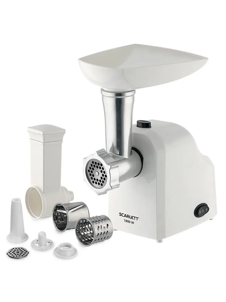Мясорубка Scarlett SC-MG45M20 это прибор высокой производительности для измельчения сырых и обработанных продуктов, натирания и шинковки, а также приготовления колбас и кеббе. С помощью этой модели вы сможете легко и быстро переработать даже жилистое мясо или твёрдые овощи. Мясорубка оснащена износостойким ножом, выполненным из качественной высокопрочной стали. Помимо насадки-мясорубки для приготовления фарша из разных продуктов в комплектацию входят тёрка и шинковка для овощей и фруктов, а также насадки для приготовления колбас и кеббе, чтобы максимально расширить возможности прибора. Профессиональная электромясорубка