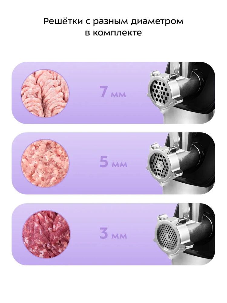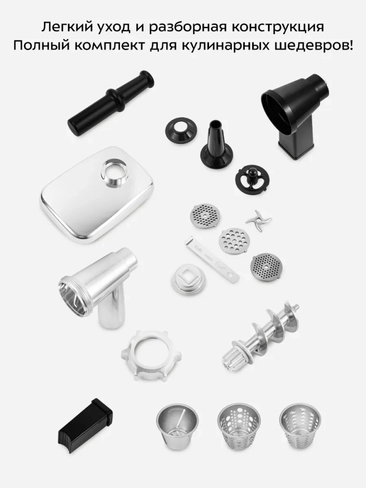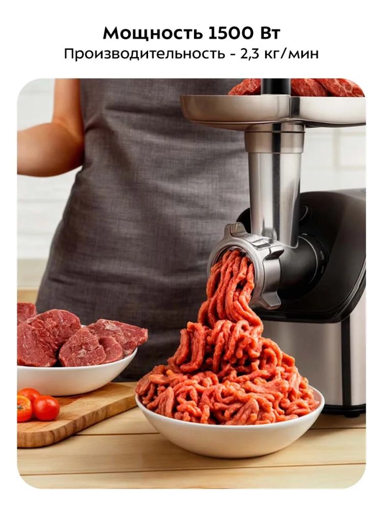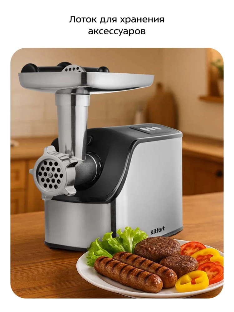 Электрическая мясорубка Kitfort — это не просто бытовая техника, это надежный помощник на вашей кухне. С ее помощью вы сможете быстро и качественно переработать мясо и овощи, приготовить домашние колбасы и другие блюда. Электрическая мясорубка с насадками и контейнером для их хранения — это удобство и функциональность в одном устройстве.