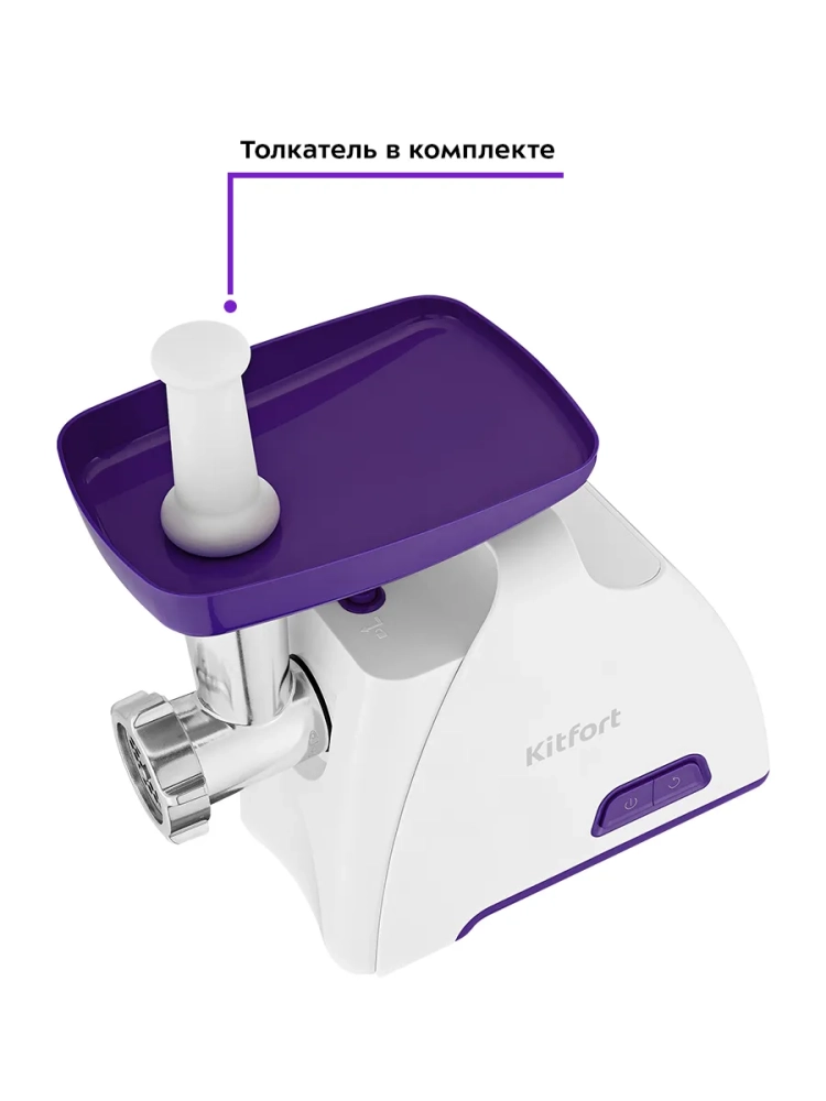 Контейнер для мяса и фарша выполнен из прочных материалов, что обеспечивает удобство в использовании и уходе. Электрическая мясорубка Kitfort также оснащена толкателем, который облегчает процесс загрузки мяса в мясорубку, делая его более безопасным и комфортным. Ручка для переноски позволяет легко перемещать устройство по кухне.