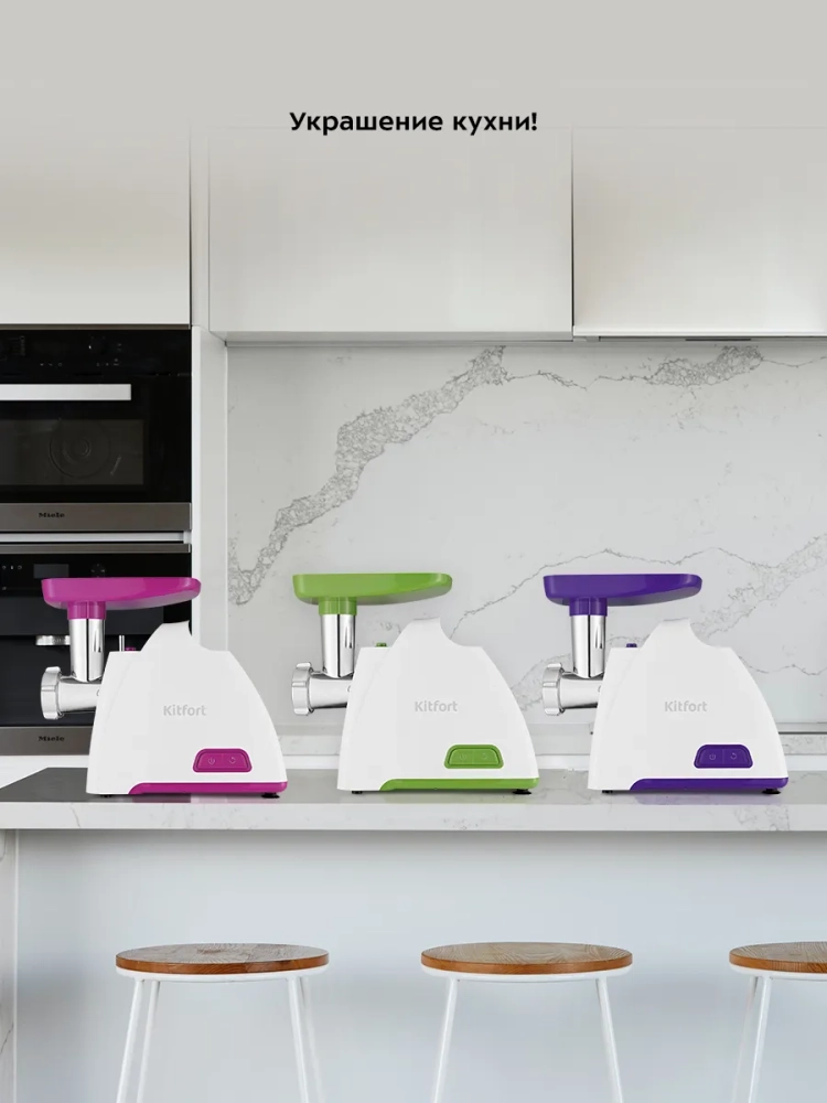 Электрические мясорубки Kitfort — это сочетание инновационных технологий и эргономичного дизайна. Мясорубка с насадками станет отличным дополнением к вашей кухонной технике, обеспечивая высокую производительность и простоту в эксплуатации. Электро мясорубка Kitfort — это выбор тех, кто ценит качество и надежность.