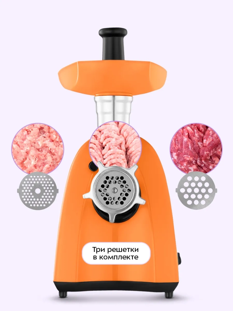 Данная модель компактна и удобна в использовании, так как ее легко собирать и мыть. Прорезиненные ножки делают устройство более устойчивым на столе. Благодаря стильному дизайну мясорубка впишется в любой интерьер.