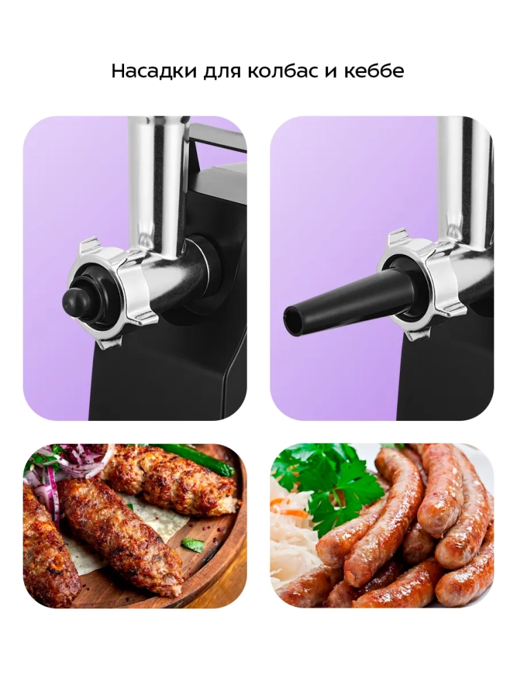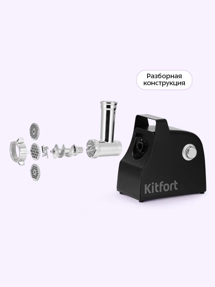 Электрическая мясорубка Kitfort KT-2128 — это надежный кухонный бытовой прибор, который станет незаменимым помощником на вашей кухне во время готовки. Эта мощная электромясорубка предназначена для измельчения как сырого, так и вареного мяса, а также для приготовления колбас и кеббе. Корпус устройства выполнен из прочного пластика, а режущие детали изготовлены из металлического материала, что обеспечивает легкость в обработке мяса различной жесткости. Мясорубка оснащена одной скоростью работы и функцией реверса, что делает её использование простым и удобным. В комплект входят три решетки с отверстиями 3 мм, 5 мм и 7 мм для изготовления фарша разной текстуры. Также предусмотрены насадки для приготовления колбас и кеббе. Эта модель отличается компактностью и удобством в использовании: её легко собирать и мыть. Прорезиненные ножки обеспечивают устойчивость прибора на столе во время работы. Благодаря стильному дизайну элект. мясорубка гармонично впишется в любой интерьер кухни. Технические характеристики включают номинальную мощность 300 Вт с возможностью увеличения до 700 Вт при блокировке вала. Производительность техники составляет до 1,8 кг/минуту при уровне шума не более 85 дБ. Длина шнура — всего лишь 0,7 м позволяет удобно разместить устройство на кухонном столе без лишних проводов. Электро прибор имеет класс защиты II от поражения электр током при напряжении ~220–240 В с частотой тока 50 Гц. Размеры устройства составляют всего лишь 335 × 150 × 355 мм.