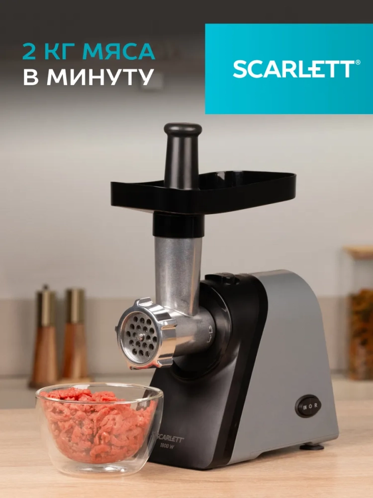 Компактная мясорубка SC-MG45S76 – универсальный прибор, который разнообразит меню всей семьи! Перфорированные диски для фарша с отверстиями 5 и 7 мм помогут получить фарш среднего и крупного помола для различных блюд. Функция реверс поможет устранить проблему скопления мяса в шнеке. В комплекте идут насадки для приготовления домашних колбасок и кеббе – традиционного восточного блюда. Мясные трубочки можно приготовить с овощными, грибными, сырными и другими начинками на ваш вкус.