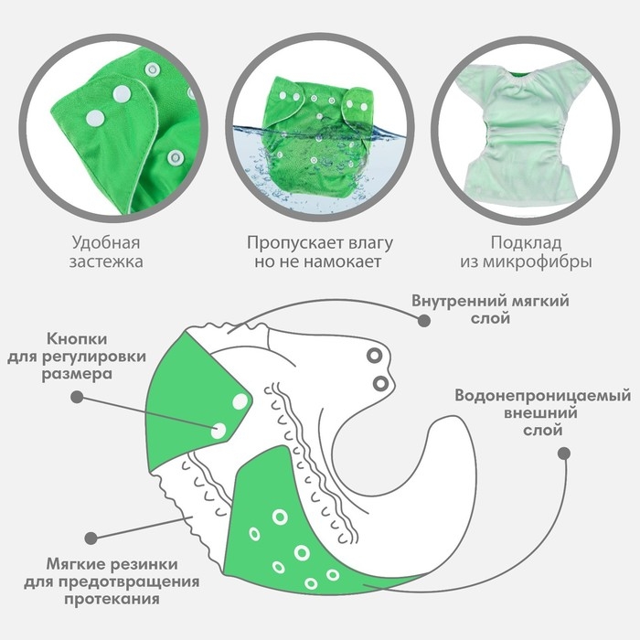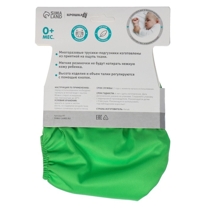 Многоразовый подгузник, 3-15 кг, цвет зеленый, Крошка Я