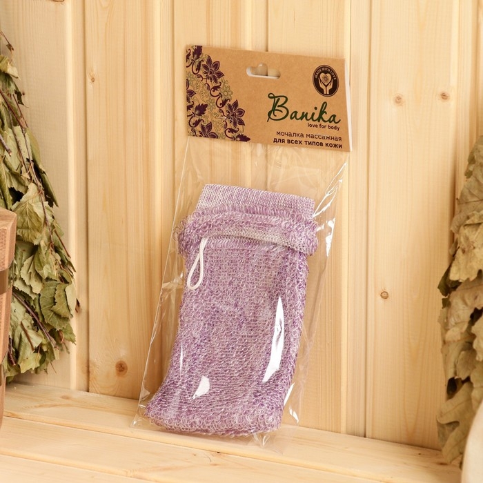 Мочалка банная с ручками "Banika", фиолетовая, полиэстер, 20х10см