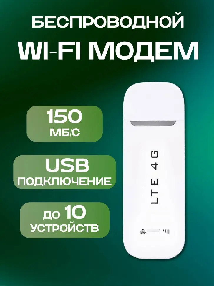 Модем портативный Wi-Fi 3в1 LTE 4G USB Белый