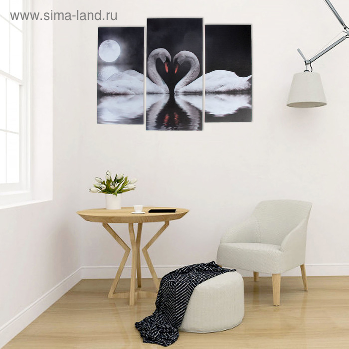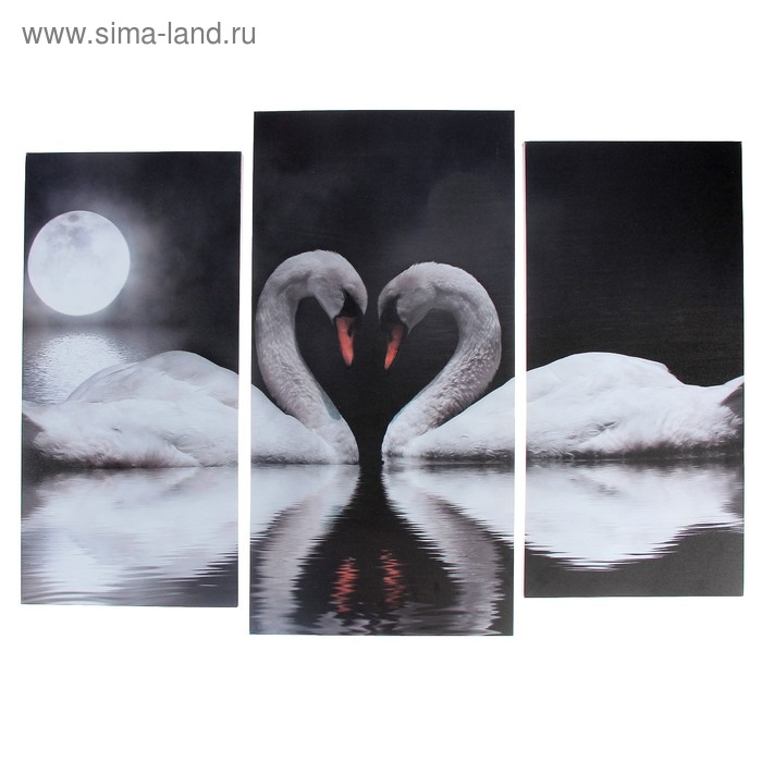 Модульная картина "Лебеди под луной" (2-25х52; 1-30х60) 60х80 см