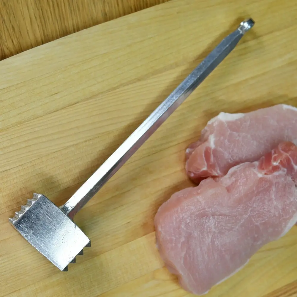 Приготовить аппетитные и сочные отбивные поможет кухонный молоток для мяса «Ретро». Рабочая часть имеет зубчатые и гладкие поверхности, зубцы идеально подойдут не только для отбивки мясных кусочков, но и для размягчения жилок. С использованием молотка отбивные получаются нежными и сочными, как в ресторане. Такое блюдо понравится всем, кто соберется за домашним столом. Инструмент изготовлен из алюминия, не деформируется со временем, не образует коррозии, гигиеничен и безвреден для здоровья. После использования тщательно промойте в воде с жидкими моющими средствами.