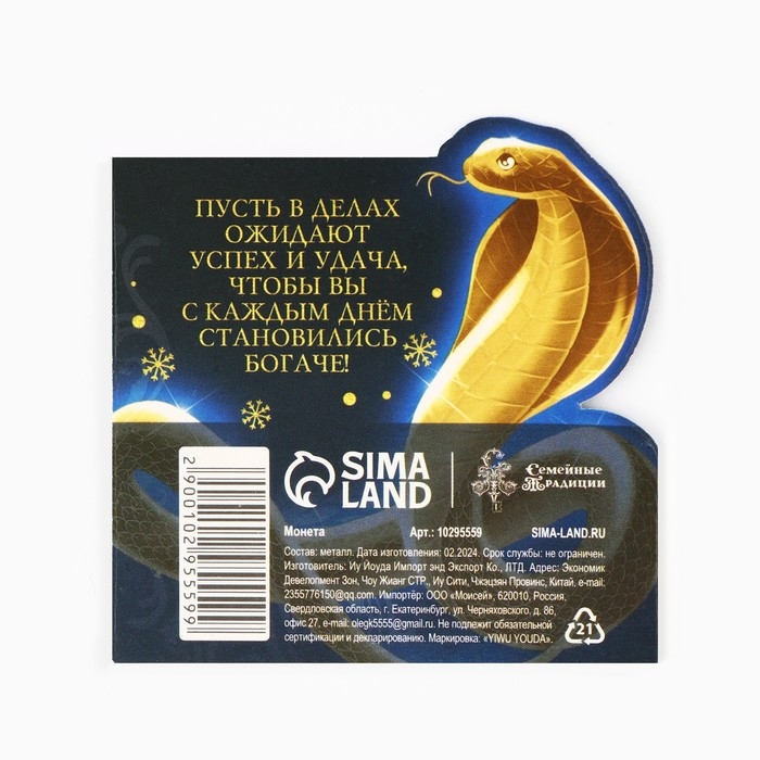 Монета новогодняя амулет «Новый год: Успеха и процветания», диам 2.5 см