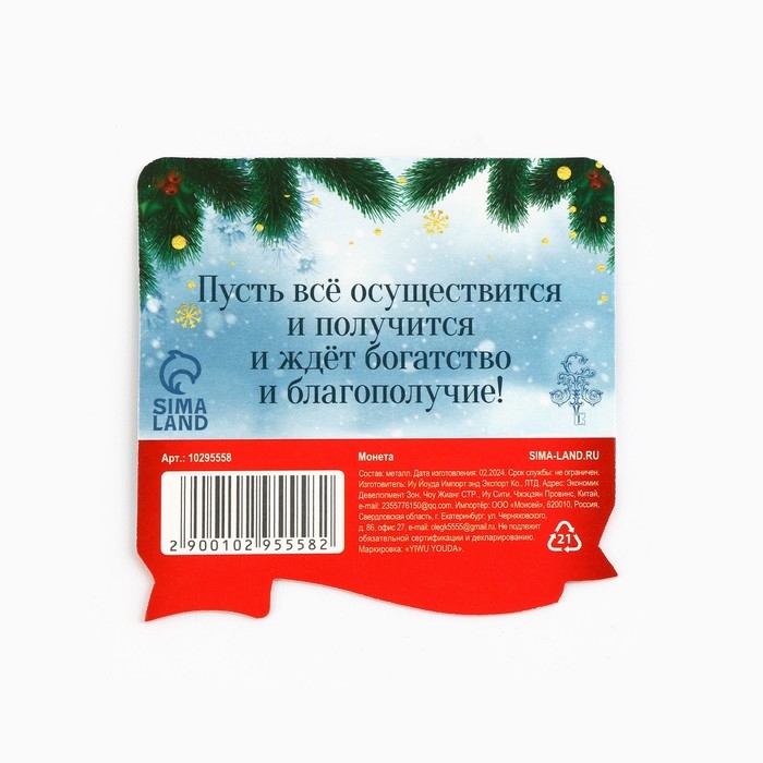 Монета новогодняя амулет «Новый год: Успешного года», диам 2.5 см