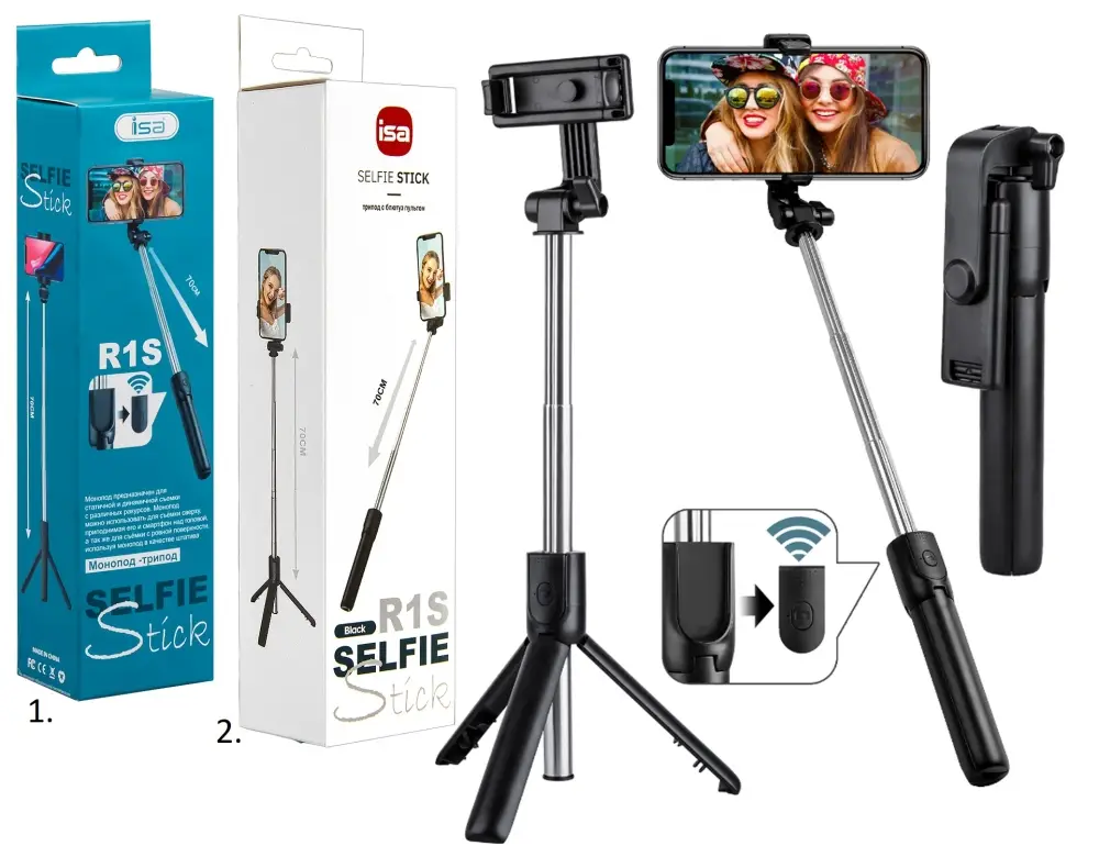 Монопод-трипод с блютуз пультом, R1S черный