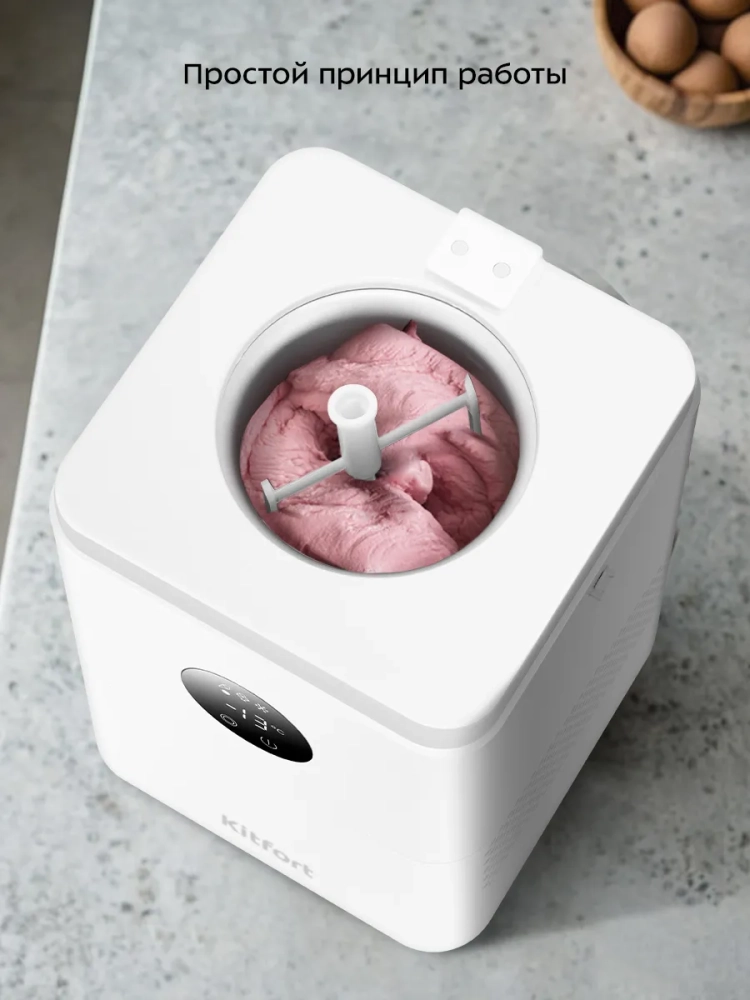 Автоматическая мороженица Kitfort КТ-1834 поможет вам приготовить настоящее мороженое из натуральных продуктов, а также сорбет, джелато и замороженный йогурт.