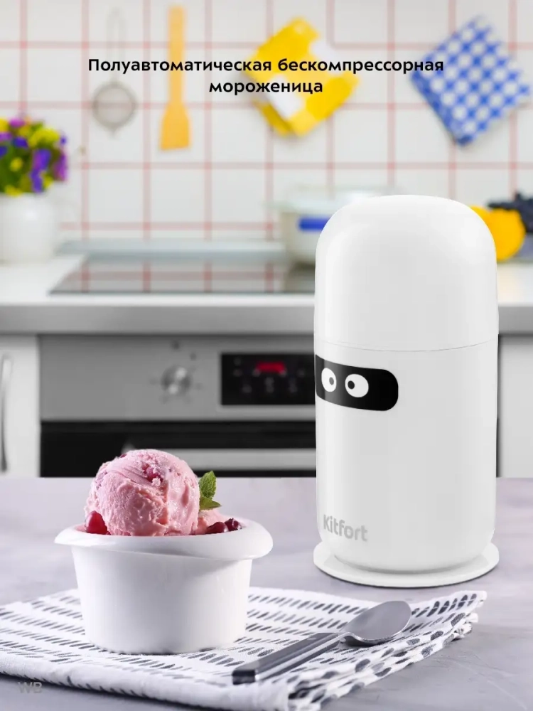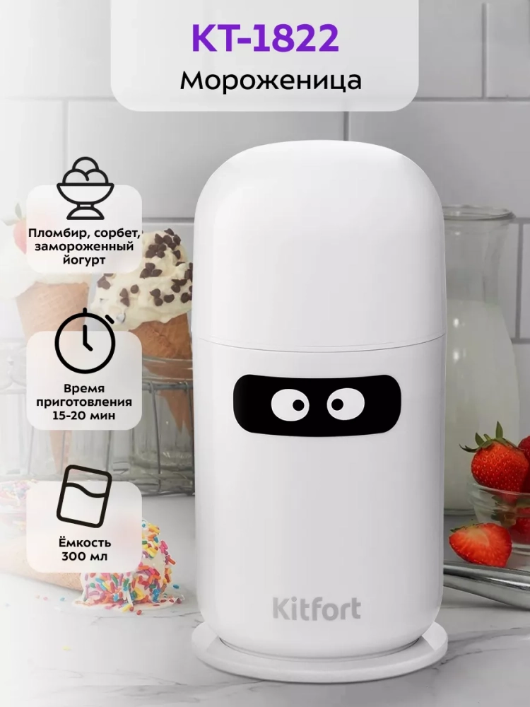 Полуавтоматическая бескомпрессорная мороженица Kitfort КТ-1822 поможет приготовить вам настоящее мороженое из натуральных продуктов, а также сорбет, джелато и замороженный йогурт. Мороженица имеет стильный пластиковый корпус, снабжена системой смешивания и имеет чашу, емкостью 0,3 л, в стенках которой находится специальная жидкость, предназначенная для охлаждения мороженого во время приготовления. Принцип работы мороженицы состоит в следующем: сначала чашу замораживают в морозильной камере, а затем в чашу добавляют готовую охлажденную смесь для мороженого. После запуска двигателя смесь для мороженого начинает перемешиваться лопастью и одновременно охлаждаться стенками чаши. Смешивающая лопасть при совершении вращения одной стороной намазывает жидкую смесь на стенки чаши для замораживания, а другой стороной, при следующем полуобороте, соскребает намерзшую смесь. Таким образом, происходит создание "снежной" структуры мороженого. Вы можете употреблять мороженое сразу после приготовления, когда оно имеет кремовую структуру, или продолжить заморозку, поместив приготовленное мороженое в морозилку на несколько часов.