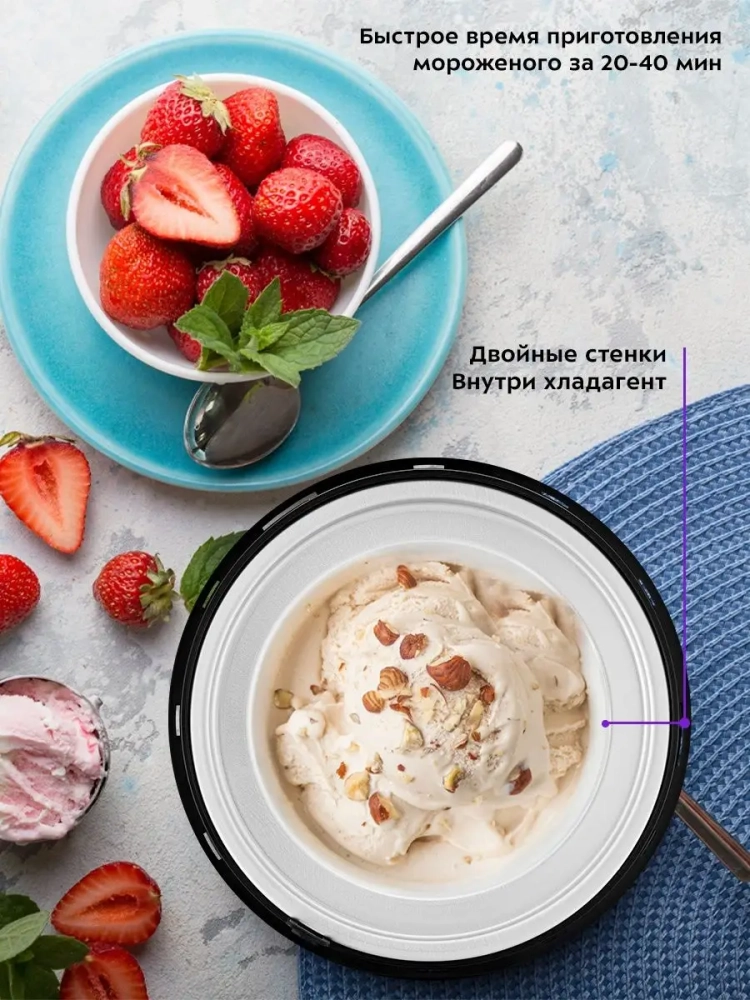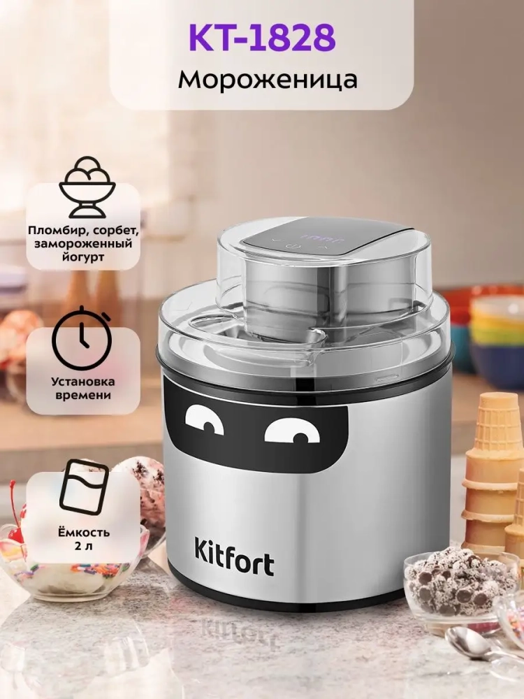 Полуавтоматическая мороженица Kitfort КТ-1828 поможет вам приготовить настоящее мороженое из натуральных продуктов, а также сорбет, джелато и замороженный йогурт. Мороженица снабжена системой смешивания и имеет чашу c хладагентом для охлаждения мороженого во время приготовления.