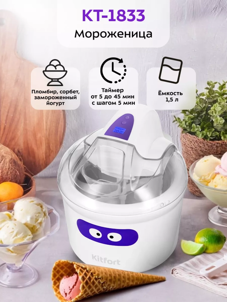 Полуавтоматическая мороженица Kitfort КТ-1833 поможет вам приготовить настоящее мороженое из натуральных продуктов, а также сорбет, джелато и замороженный йогурт. Мороженица снабжена системой смешивания и имеет чашу c хладагентом для охлаждения мороженого во время приготовления.