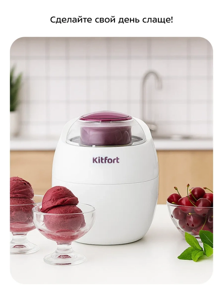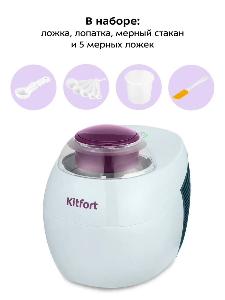 Электрическая мороженица Kitfort КТ-1842 мощностью 60 Вт — это незаменимая техника для вашей кухни, позволяющая создавать домашние десерты. Этот бытовой прибор идеально подходит для приготовления мороженого, сорбета, джелато и замороженного йогурта. Принцип работы устройства основан на эффекте Пельтье: модуль охлаждает чашу, а лопасть перемешивает ингредиенты. Это обеспечивает равномерное замораживание и создание "снежной" структуры мороженого. Мороженица оснащена прозрачной крышкой, что позволяет наблюдать за процессом приготовления. В комплект входят ложка для формирования аккуратных шариков из готового продукта и мерный стакан с пятью ложками разного размера для точного смешивания ингредиентов. Лопатка помогает извлечь готовое лакомство из чаши. Устройство устойчиво благодаря прорезиненным ножкам, предотвращающим скольжение по столу во время работы. Блок питания имеет входное напряжение ~100–240 В при частоте 50/60 Гц и выходное =12 В с силой тока 5 А. Мощность составляет 60 Вт, а класс защиты от поражения электрическим током — II для блока питания и III для мороженицы. Емкость чаши составляет 0,5 литра — оптимальный объем для небольших порций десерта на всю семью или компанию друзей. Длина шнура блока питания достигает 1,6 метра (0,7 + 0,9 м), что обеспечивает удобство размещения прибора на кухне. Основной компонент вспенивающего газа изоляции — циклопентан C5H10 — гарантирует безопасность использования устройства в домашних условиях. Мороженница Kitfort также позволяет экспериментировать с различными рецептами: от классического ванильного до экзотических вкусов с добавлением фруктов или шоколада и других сладостей. Приготовление роллов ice cream станет увлекательным занятием как для взрослых так и детей.