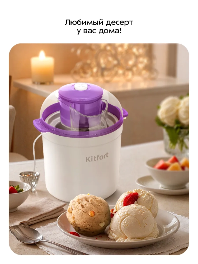 Полуавтоматическая мороженица Kitfort КТ-1847 поможет вам приготовить настоящее мороженое из натуральных