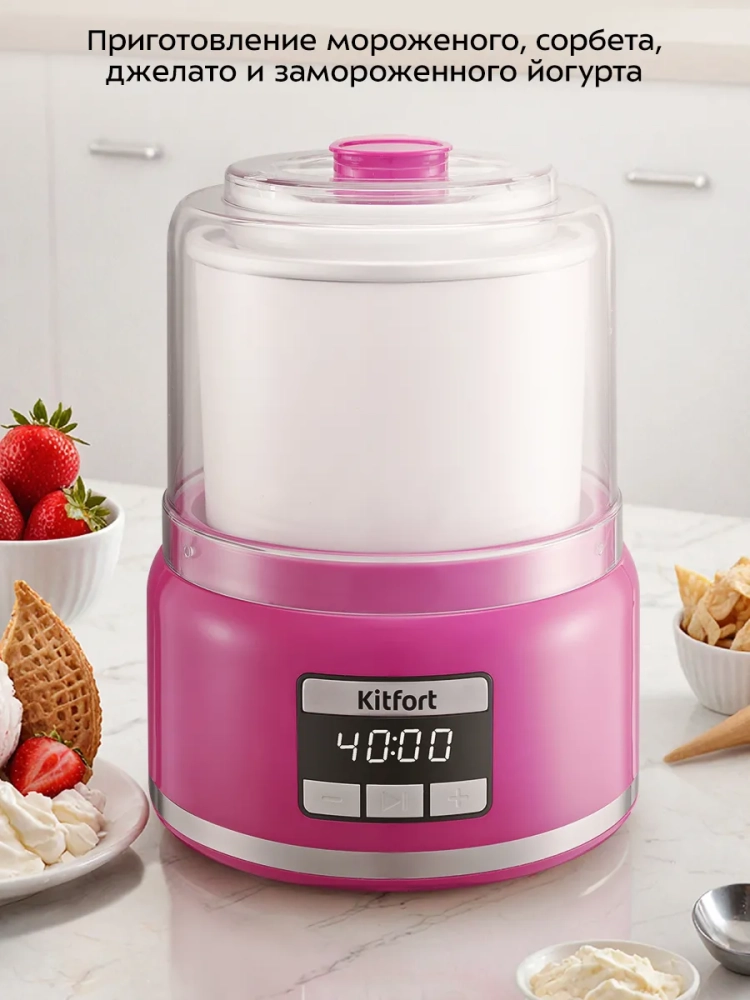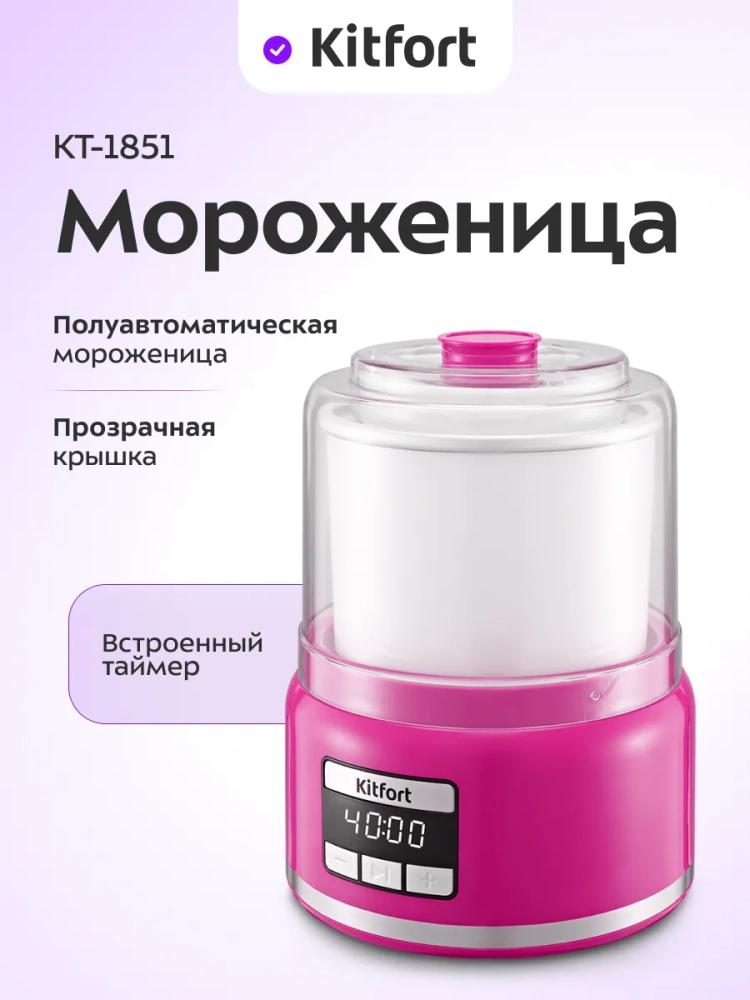Полуавтоматическая мороженица Kitfort КТ-1851 поможет вам самостоятельно приготовить мороженое, а также сорбет, джелато или замороженный йогурт из натуральных ингредиентов. Мороженица оснащена смешивающей лопастью и чашей, в стенках которой находится хладагент для охлаждения мороженого во время приготовления.