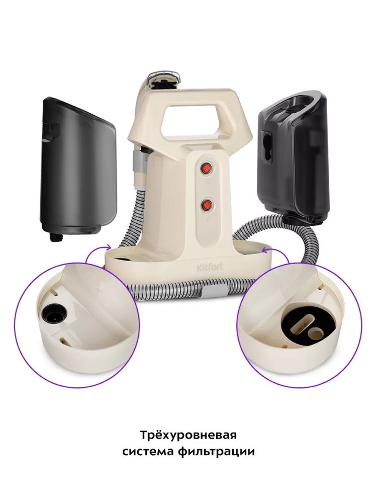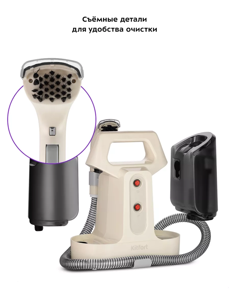 Моющий пылесос для ковров и мягкой мебели Kitfort KT-5240 поможет очистить обивку дивана, кресел, сидений в машине и другой мягкой мебели, а также ковры и ковровые покрытия. Пылесос автоматически подает чистую воду на очищаемую поверхность, а затем всасывает воду с пылью и другими загрязнениями. В резервуар для чистой воды можно добавлять воду или воду со специальным чистящим средством. В резервуаре для грязной воды предусмотрена защитная вставка с поплавком, который по мере наполнения резервуара поднимается. Когда резервуар для грязной воды наполнен выше максимально допустимого уровня, поплавок перекроет всасывающее отверстие и защитит двигатель от попадания влаги. В таком случае вы почувствуете, что пылесос перестал всасывать жидкость. Отключите пылесос и вылейте грязную воду из резервуара. Если резервуар для грязной воды переполнен, и вы не сразу выключили пылесос, она может вытекать снизу пылесоса. Это нормально, не является неисправностью и предотвращает попадание воды в двигатель.