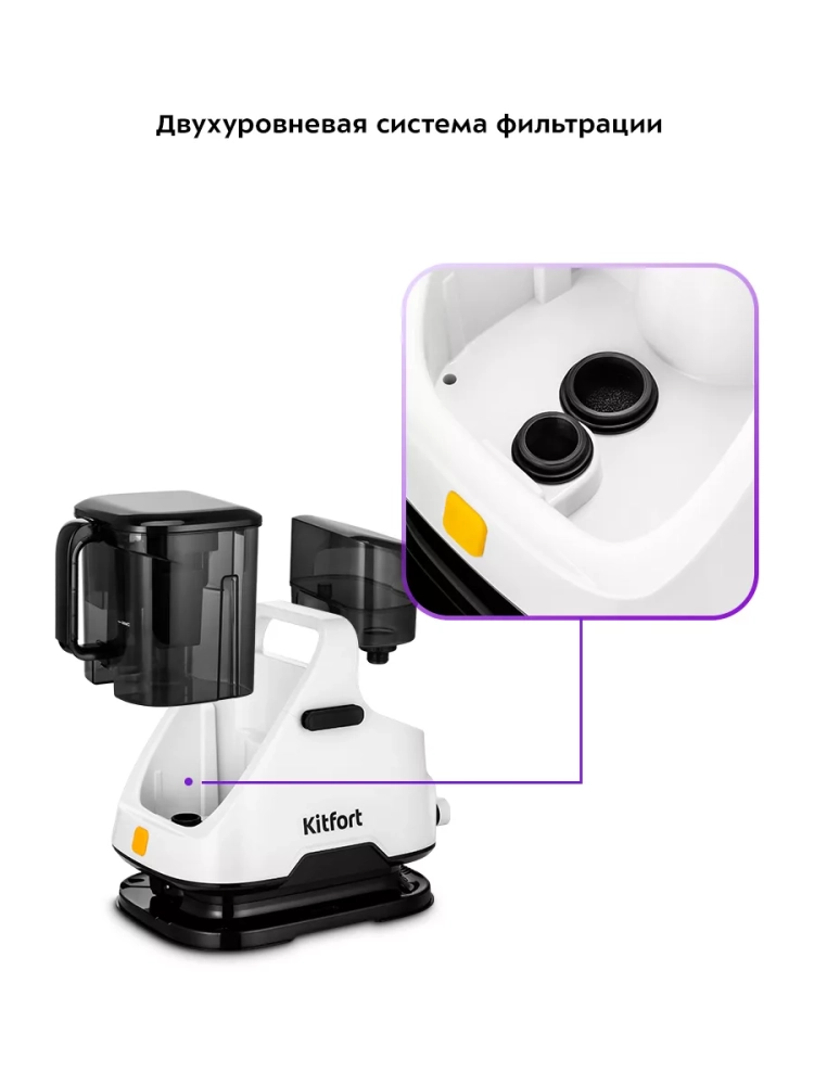 Моющий пылесос для ковров и мягкой мебели Kitfort KT-5241 поможет очистить обивку дивана, кресел, сидений в машине и другой мягкой мебели, а также ковры и ковровые покрытия. Пылесос автоматически подает чистую воду на очищаемую поверхность, а затем всасывает воду с пылью и другими загрязнениями. В резервуар для чистой воды можно добавлять только воду. В резервуаре для грязной воды предусмотрен поплавок, который по мере наполнения резервуара поднимается. Когда резервуар для грязной воды наполнен выше максимально допустимого уровня, поплавок перекроет всасывающее отверстие и защитит двигатель от попадания влаги.