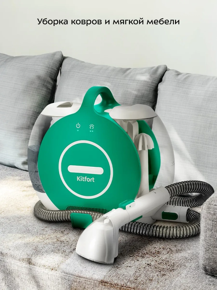 Моющий пылесос для ковров и мягкой мебели Kitfort KT-5270 поможет очистить обивку дивана, кресел, сидений автомобиля и другой мягкой мебели, а также ковры и ковровые покрытия. Пылесос автоматически подает чистую воду на очищаемую поверхность, а затем всасывает воду с пылью и другими загрязнениями. Пыль и грязь оседают в воде в резервуаре для грязной воды. В резервуар для чистой воды можно добавлять воду или воду со специальным чистящим средством. В резервуаре для грязной воды предусмотрена защитная вставка с поплавком, который по мере наполнения резервуара поднимается. Когда резервуар для грязной воды будет наполнен выше максимально допустимого уровня, поплавок перекроет всасывающее отверстие и защитит двигатель от попадания влаги. В таком случае вы почувствуете, что пылесос перестал всасывать жидкость. Отключите пылесос и вылейте грязную воду из резервуара.