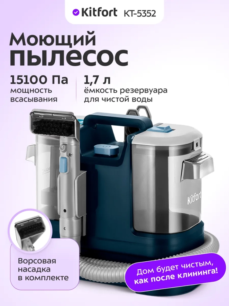 Купить пылесос Kitfort — значит выбрать надежное и эффективное устройство для уборки. Моющий пылесос Kitfort КТ-5352 — это сочетание мощности, функциональности и удобства использования. Пылесосы Kitfort предназначены для тех, кто ценит качество и надежность в каждом аспекте уборки. Выбирая пылесос Kitfort, вы получаете устройство, которое справится с любыми задачами по уборке мебели, ковров и пола. Моющие пылесосы Kitfort — это ваш надежный партнер в поддержании чистоты и уюта в доме.