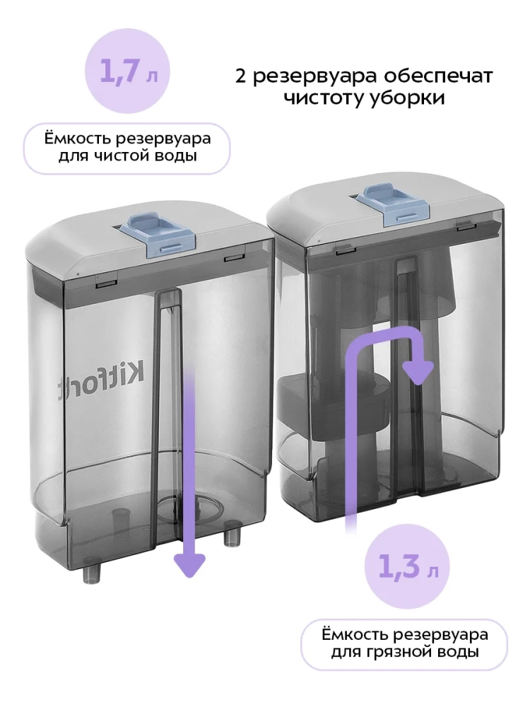 Моющий пылесос Kitfort оснащен функцией влажной уборки, что позволяет использовать специальную жидкость для более глубокой очистки. Проводной дизайн пылесоса обеспечивает стабильную мощность и непрерывную работу, что особенно важно при уборке больших площадей. Вертикальный пылесос Kitfort удобен в использовании благодаря эргономичной ручке, которая облегчает маневрирование и доступ к труднодоступным местам.
