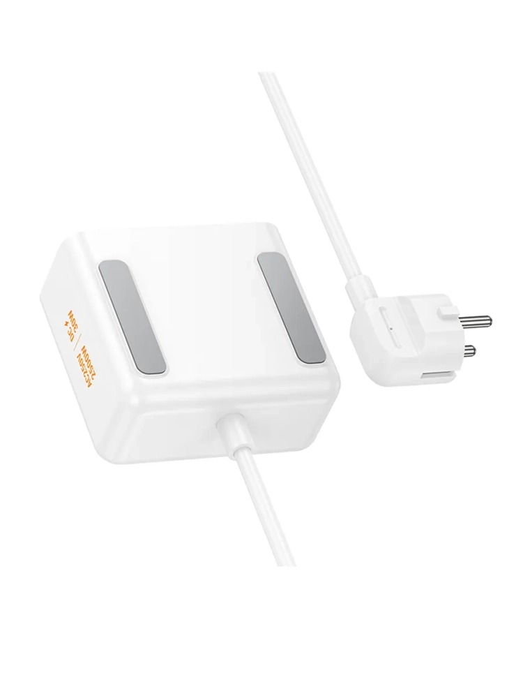 hoco AC27 - это сетевой фильтр объединяющий в себе функции удлинителя с двумя розетками и блока зарядки для смартфонов и других гаджетов (оснащен 1-м USB выходом и 2-мя Type-C)