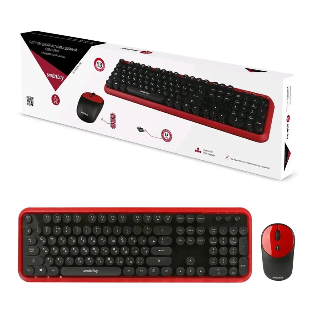 Мультимедийный комплект клавиатура+мышь Smartbuy черно-красный