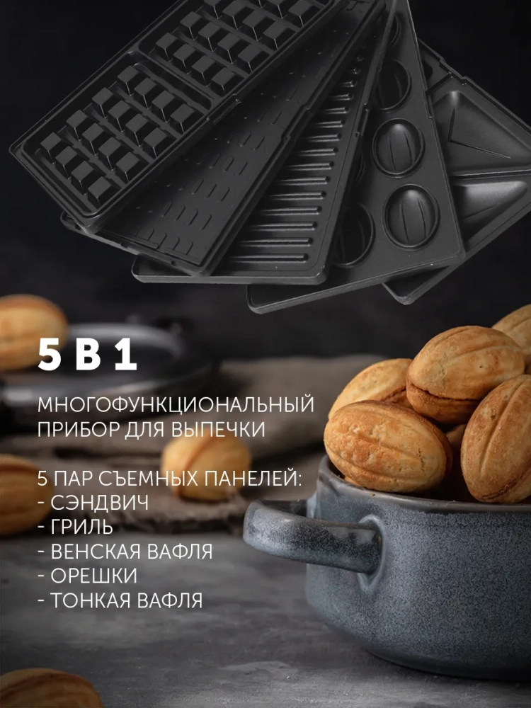 Мультипекарь 5в1 PST 0105 вафельница, орешница, гриль