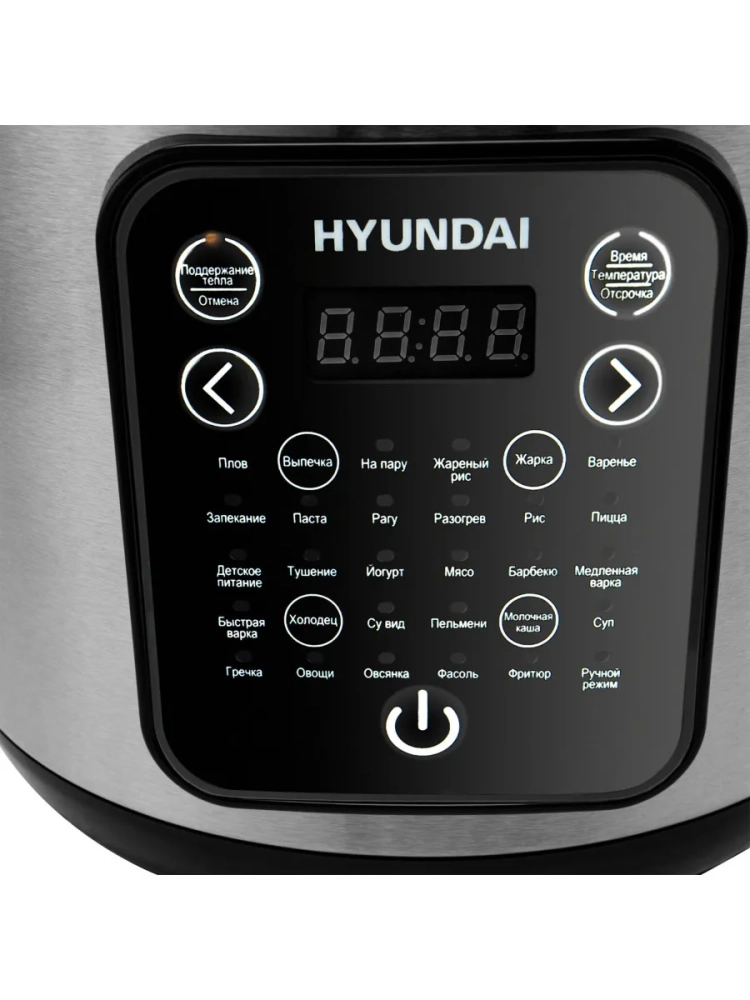 Количество режимов приготовления мультиварки Hyundai HYMC-2401 понравится даже самому искушенному гурману. Всего их 30, включая ручной режим, в котором параметры готовки можно настроить самостоятельно. Однако для тех, кто не желает вдаваться в тонкие настройки, огромное количество стандартных блюд из предустановленного меню будут доступны по нажатию пары кнопок. Все органы управления Hyundai HYMC-2401 эргономично вынесены на переднюю панель. Это яркий жидкокристаллический дисплей и сенсорные клавиши с интуитивно понятными подписями.