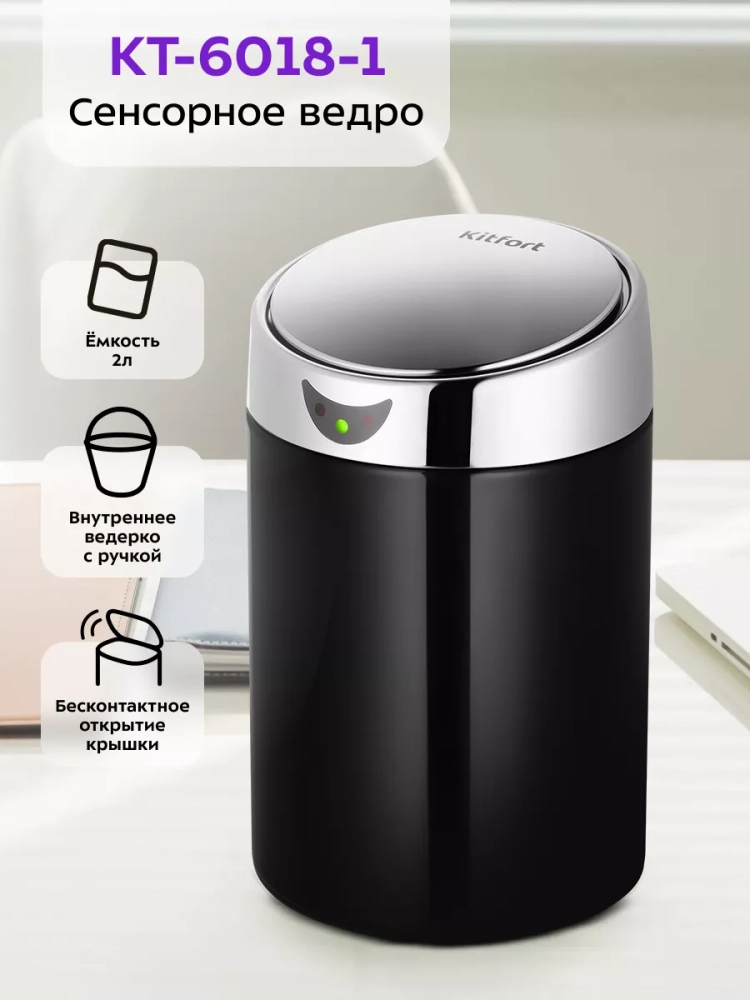 Ведро Kitfort КТ-6018 — это не просто мусорка, а функциональный элемент вашего интерьера, который сочетает в себе стильный дизайн и современные технологии. Это ведро для мусора с сенсорной крышкой станет отличным дополнением к вашему рабочему столу или кухне, обеспечивая удобство и гигиеничность в использовании.
