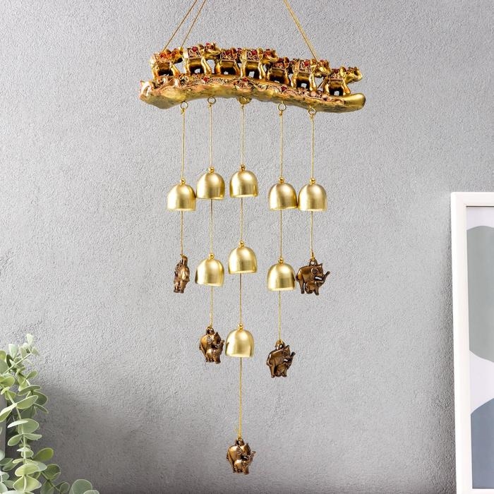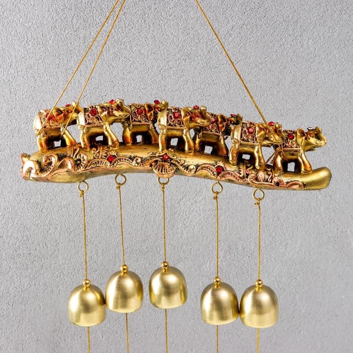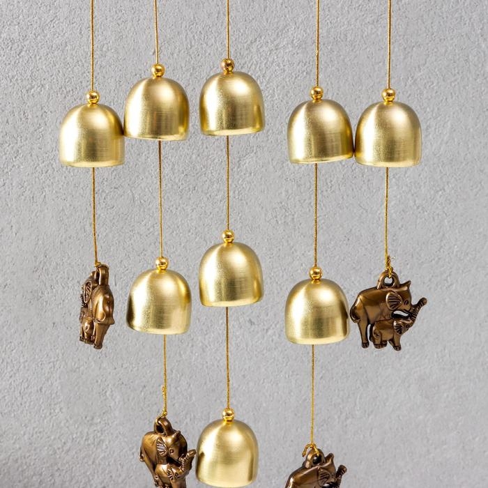 Музыка ветра металл, полистоун "Семь слонов на бивне" 9 колокольчиков 44х21 см