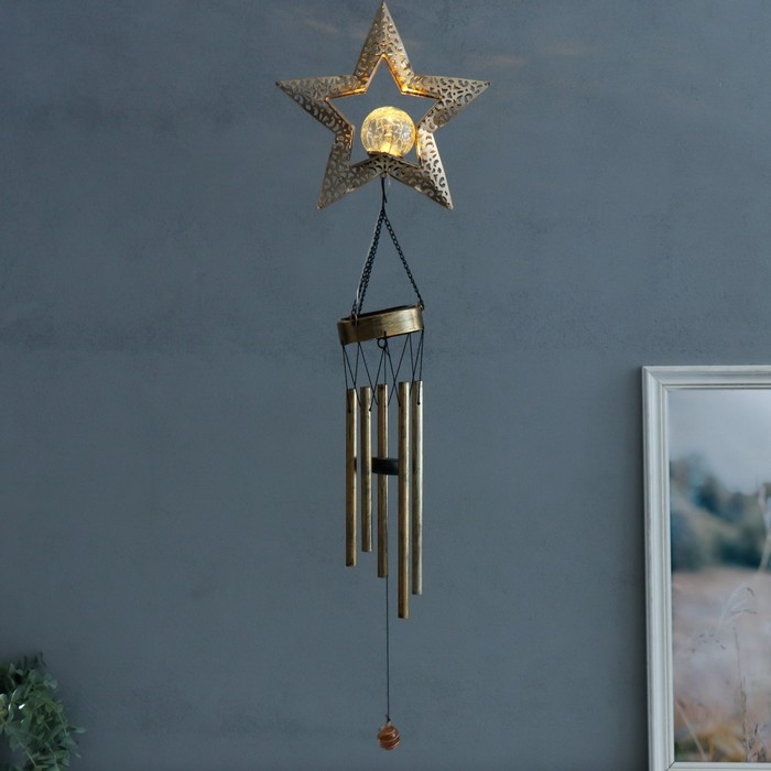 Музыка ветра с подсветкой от солнечной батареи "Звезда" 5 трубок 24х10х105 см