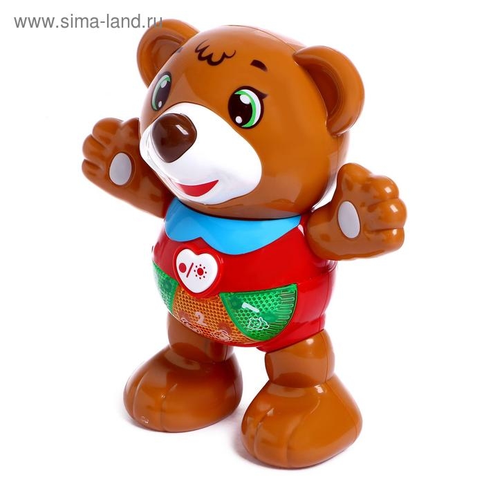 Весёлый мишка — это отличный друг для малыша. Нажимая на яркие цветные кнопочки, ребёнок будет слушать песни и подпевать зверьку. Игрушка прекрасно развивает музыкальный слух.