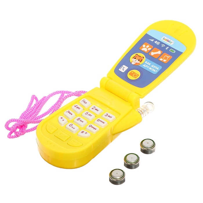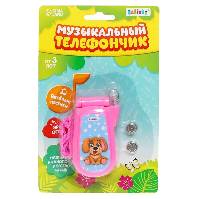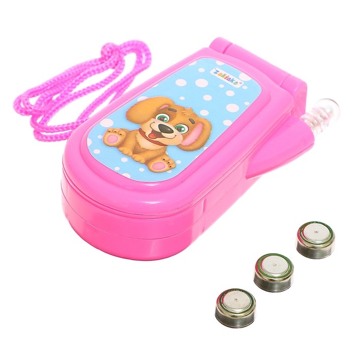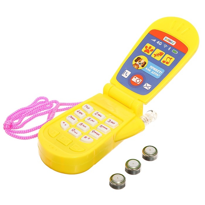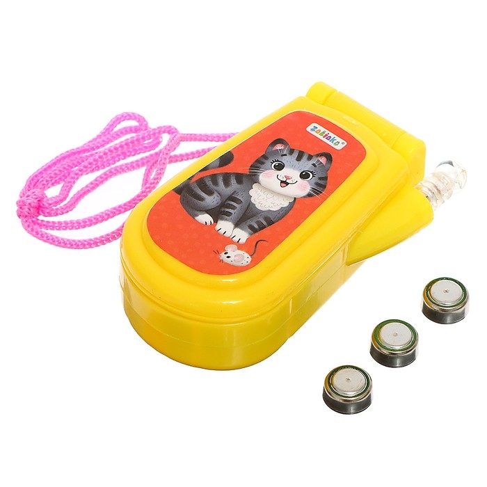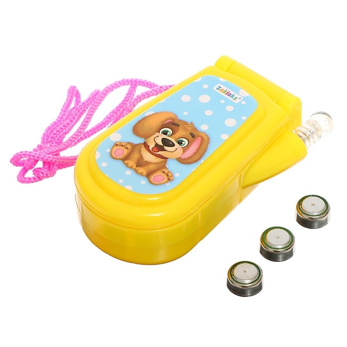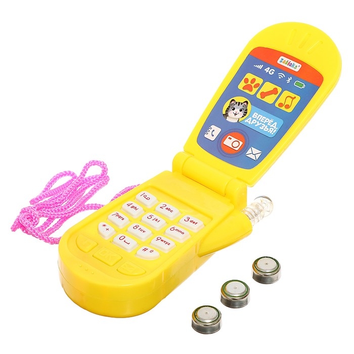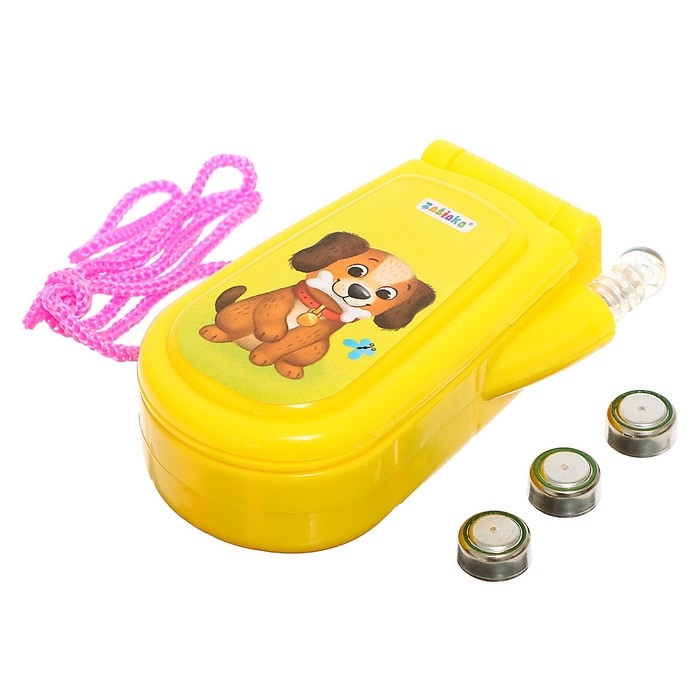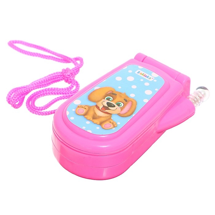 Яркий огонёк и картинки привлекут внимание ребёнка. Телефончик можно носить на шее. Есть верёвочка.
