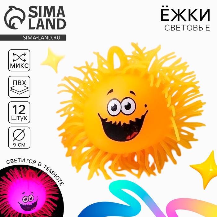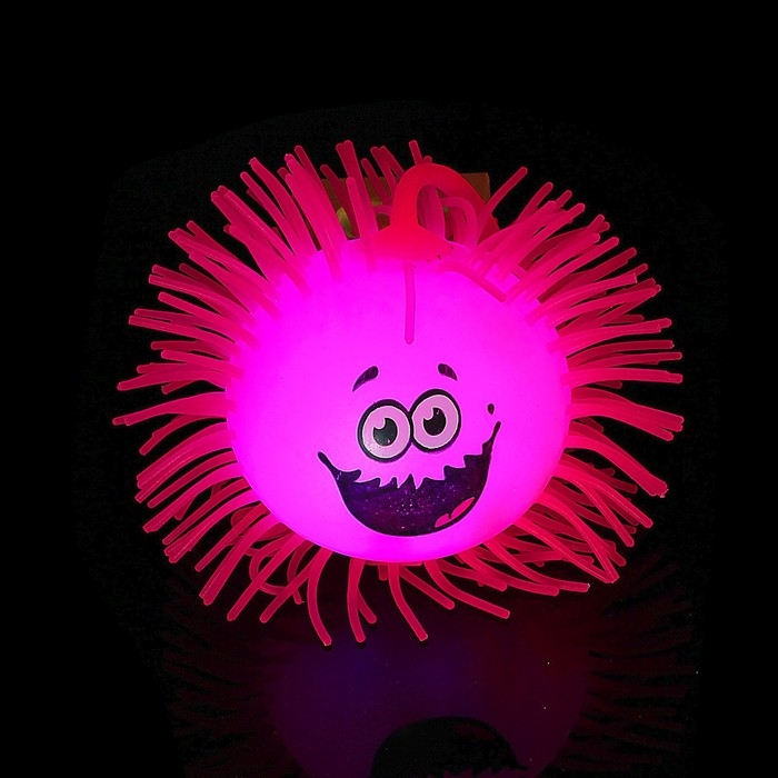 У озорного пушистика есть резиновая верёвочка, за которую удобно держать во время игры. А внутри такого ёжика находится шарик, он светится и мигает при ударе, что очень зрелищно выглядит в темноте. Эта детская игрушка завладеет вниманием малыша — в неё невозможно не влюбиться!