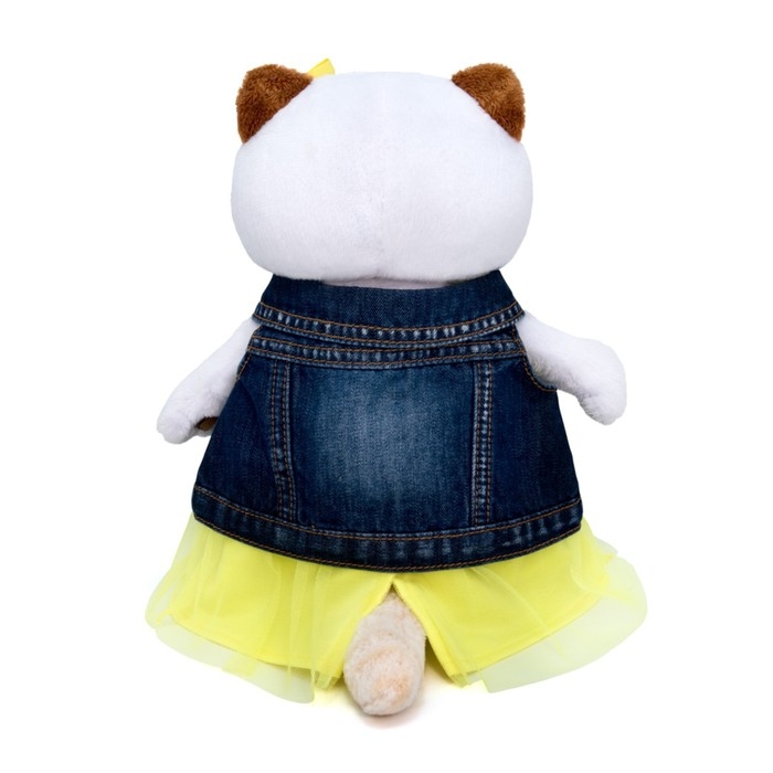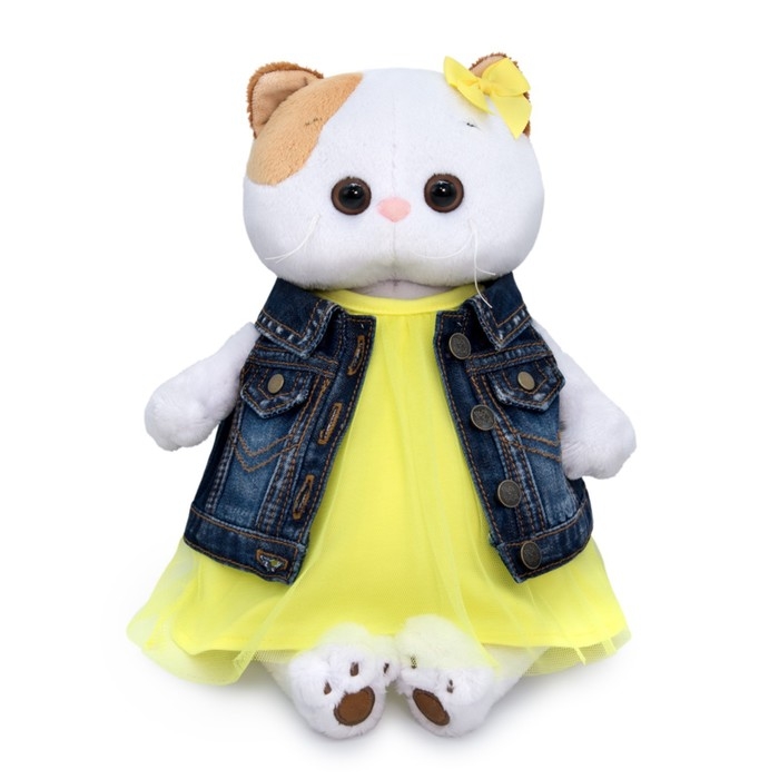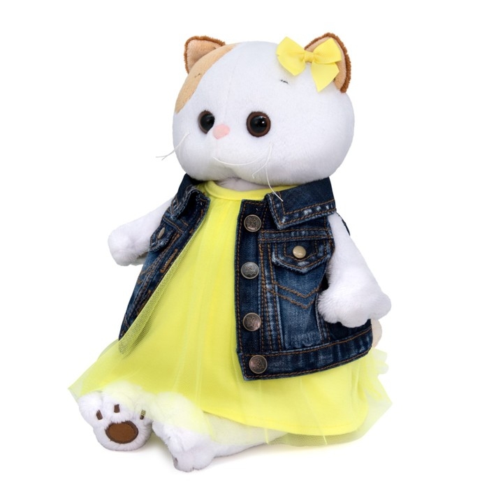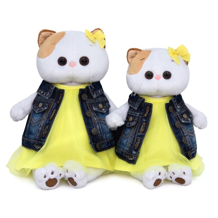 - Кошечка Ли-Ли встречает яркое лето в прекрасном джинсовом жилете из плотного денима с потёртостями и в платье без рукавов цвета лютика. На ушке у Ли‑Ли милый желтый бантик.