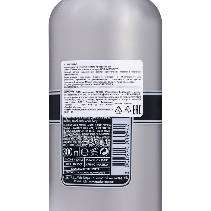 Мыло для рук жидкое Tesori d’Oriente белый мускус, 300 мл