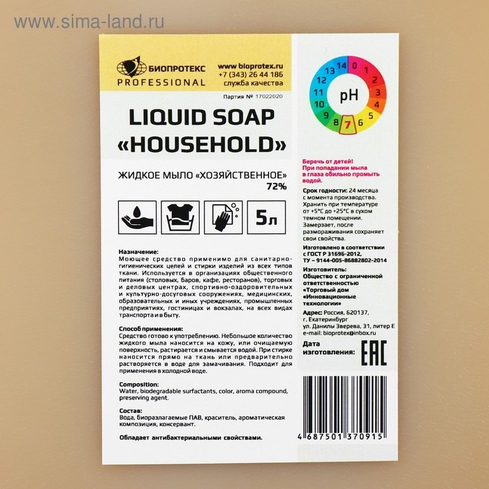 Мыло хозяйственное, жидкое, 72% , 5л
