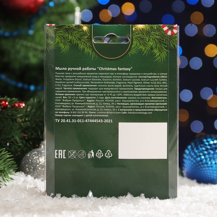 Мыло ручной работы "новогоднее" парфюмированное, белое, 50 г