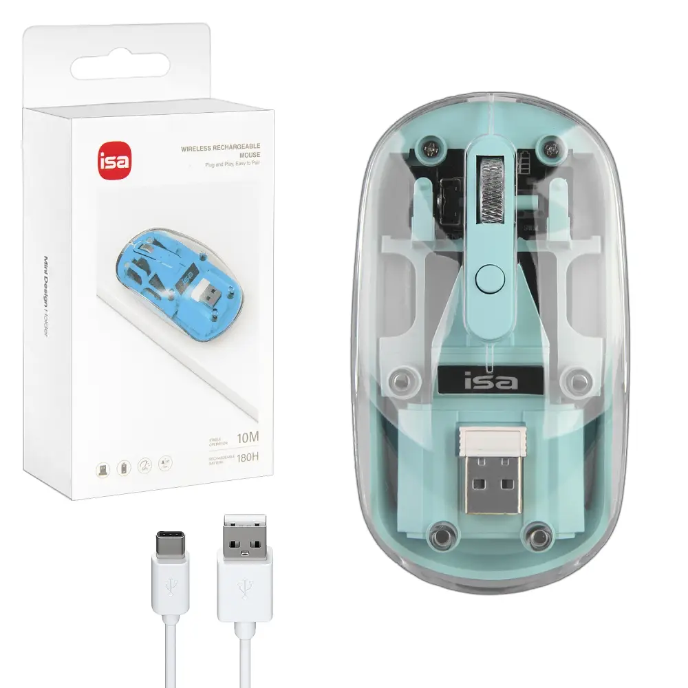 Мышь беспроводная WM-8 ISA Прозрачно-голубая (60 шт/кор)