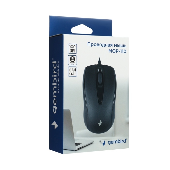 Мышь Gembird MOP-110, проводная, оптическая, 1000 dpi, USB, чёрная