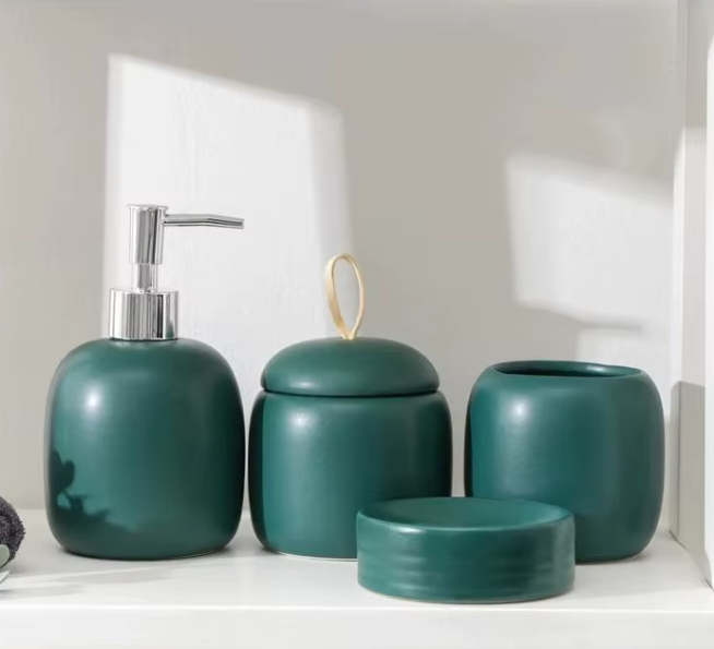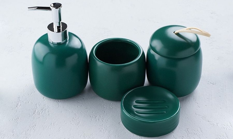 Набор аксессуаров для ванной комнаты SAVANNA Monro, 4 предмета (мыльница, дозатор для мыла 450 мл, стакан, баночка), цвет зеленый