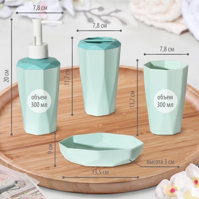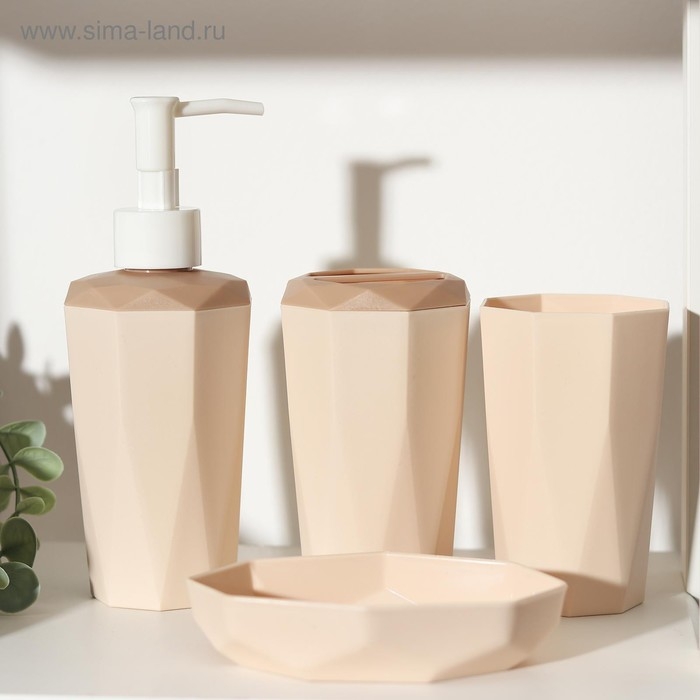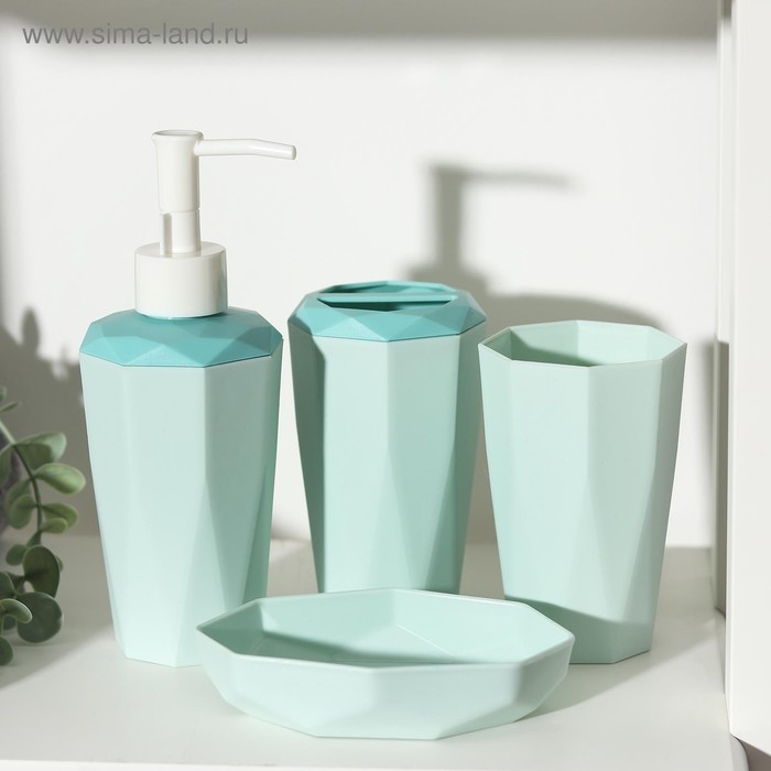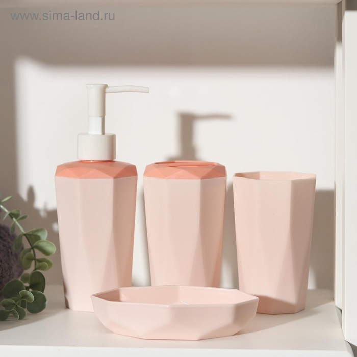 Набор аксессуаров для ванной комнаты, 4 предмета (дозатор 350 мл, мыльница, подставка, стакан), цвет МИКС