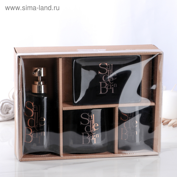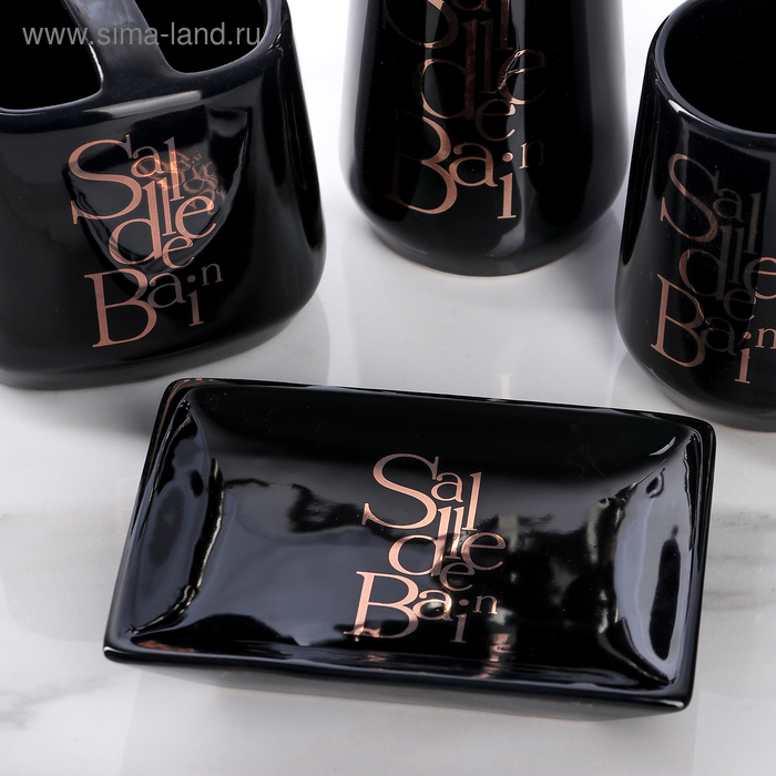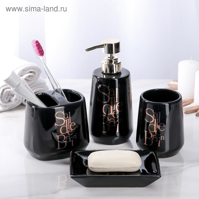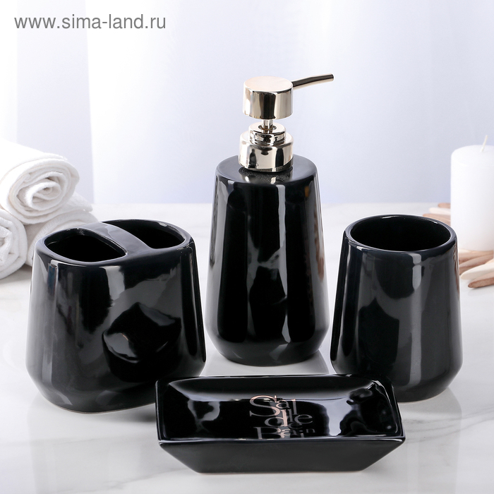 Набор аксессуаров для ванной комнаты Bonjour, 4 предмета (дозатор 400 мл, мыльница, 2 стакана), цвет чёрный