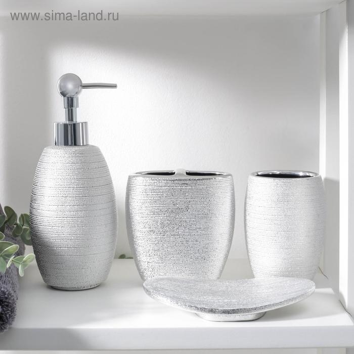 Набор аксессуаров для ванной комнаты «Камилла», 4 предмета (мыльница, дозатор для мыла 480 мл, 2 стакана), цвет серебро
