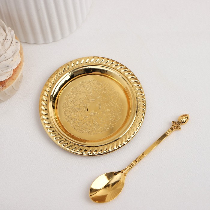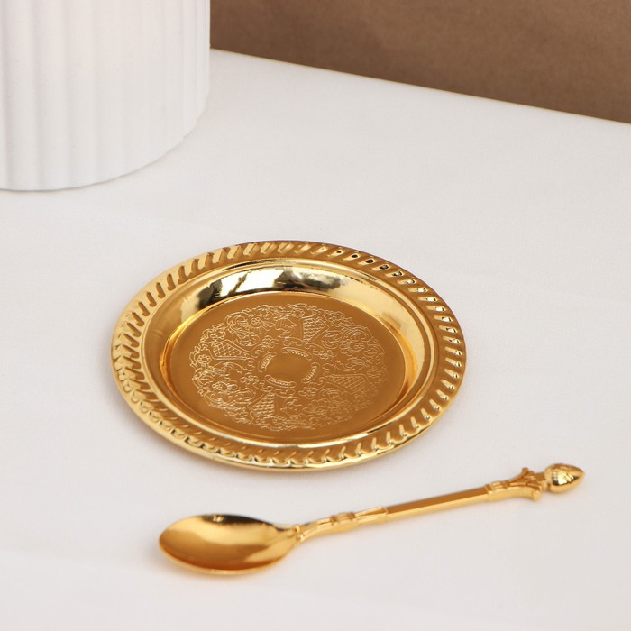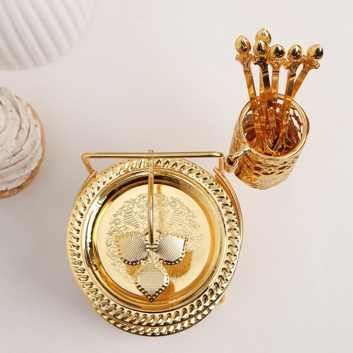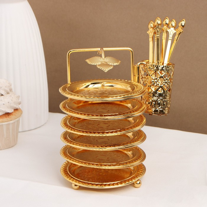 Набор блюдец «Золото», с подставкой, с ложками, 6 шт, цвет золотой